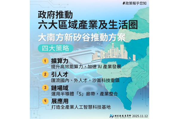 [產業新聞]大南方新矽谷推動方案 建構 AI 為核心的南台灣產業生態系