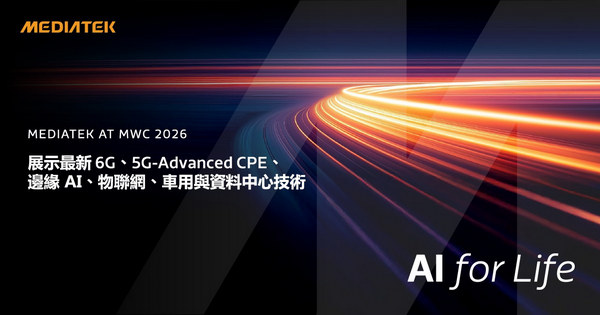 聯發科技將於 2026 世界行動通訊大會(MWC)以「AI for Life: From Edge to Cloud」為主題,由總經理陳冠州發表主題演講,並展出聯發科技一系列最新技術,包含 6G 通訊的技術突破、搭載 Wi-Fi 8 技術的 5G-Advanced CPE 平台、邊緣 AI 在智慧型手機與物聯網裝置上的應用、車載通訊技術,以及次世代資料中心技術,展現聯發科技以先進晶片及 AI 技術推動一個真正智慧、無縫連結生態系的領先地位。