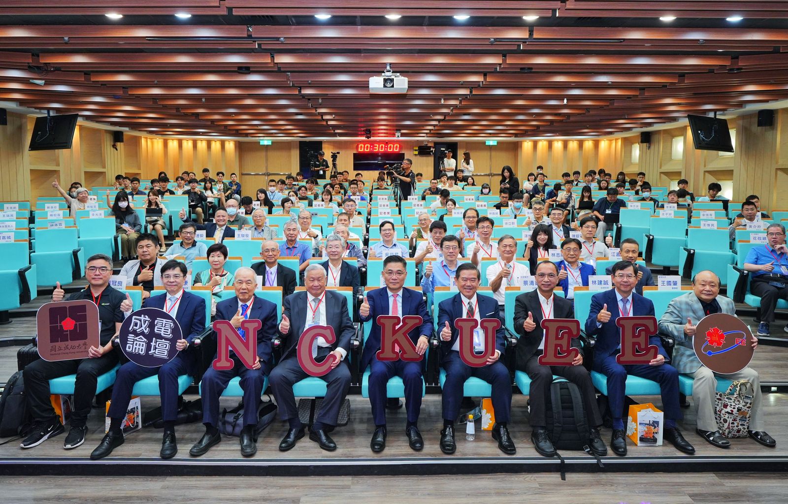 ▲第五屆成電論壇開場大合照(左起:AMD 台灣商用業務處資深業務副總經理林建誠、創惟科技董事長王國肇、旺宏電子董事長吳敏求、盟立集團董事長兼總裁孫弘、成大校長沈孟儒、佳世達集團董事長陳其宏、Google Chrome OS 研發總經理馬大康、台達機電事業群副總經理蔡清雄、NVIDIA 資深資料科學家劉冠良)