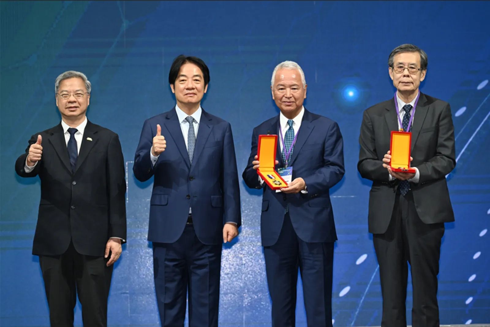 現場由賴總統頒發「經濟部專業獎章」,獲獎人為日本自民黨半導體戰略推進議員聯盟名譽會長甘利明,以及台積電董事長魏哲家,表彰他們在國際經貿、產業合作及科技創新上具有卓越貢獻。