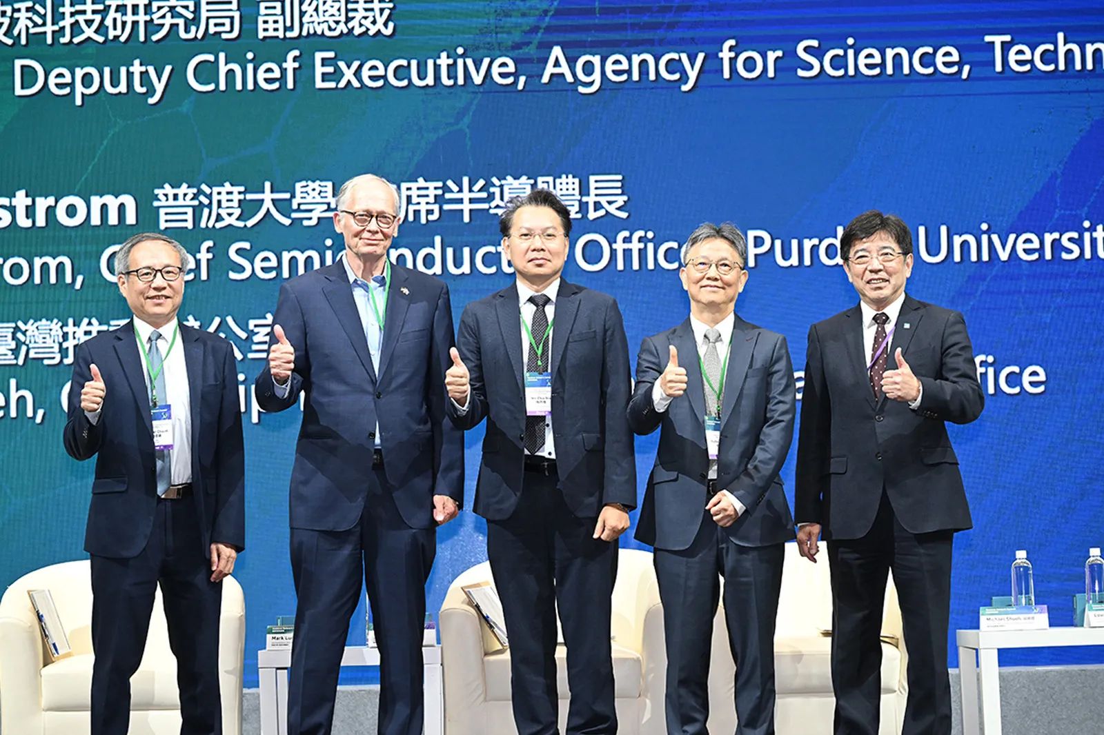 ▲第三場次以「半導體人才培育與交流」為重點,針對半導體人才短缺之痛點,分享各國企業與政府,如何攜手建立具彈性且可規模化的人才培育系統,培養具備系統思維與跨部門協作能力的技術與管理人才。圖左起為晶創臺灣推動辦公室執行長闕志達、普渡大學首席半導體長 Mark Lundstrom、新加坡科技研究局副總裁楊育佳、環球晶圓集團營運長薛銀陞、工研院院長劉文雄。