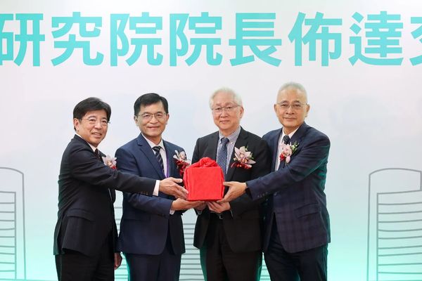 ▲工研院於 27 日舉辦院長佈達暨交接典禮,左起為工研院卸任院長劉文雄、經濟部次長何晉滄、工研院董事長吳政忠、工研院新任院長張培仁。