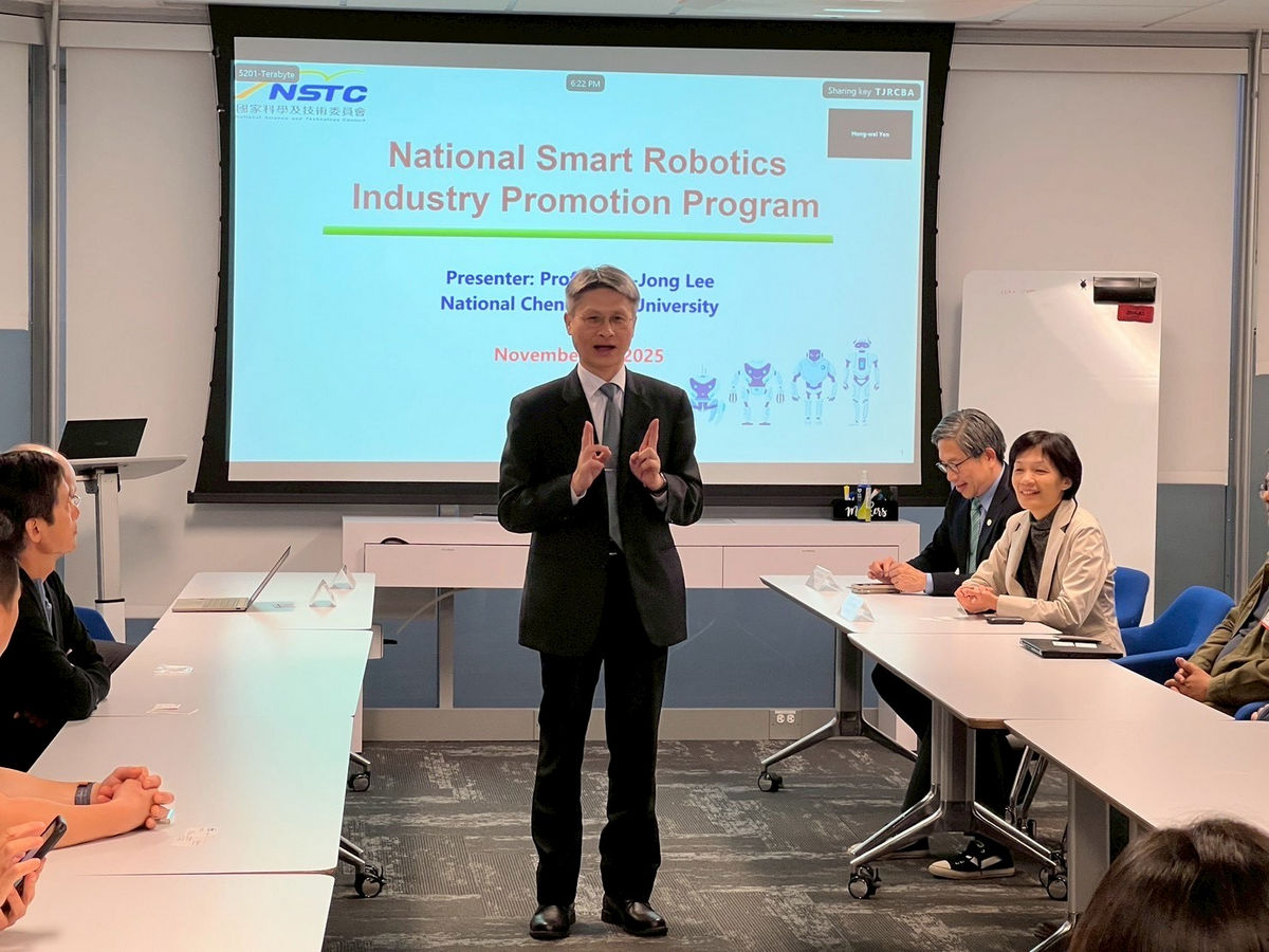國科會副主委蘇振綱於今 (2025) 年 11 月率團赴美,參訪機器人科研機構、AI 與自動化研究機構及新創基地,推動臺美智慧機器人產業與人才交流合作,並於臺灣時間 11 月 12 日於舊金山科技組舉辦「臺灣智慧機器人產業與國際人才交流座談會」,吸引眾多國際學者及專業人才熱烈參與,共同探討智慧機器人技術發展與產業應用。